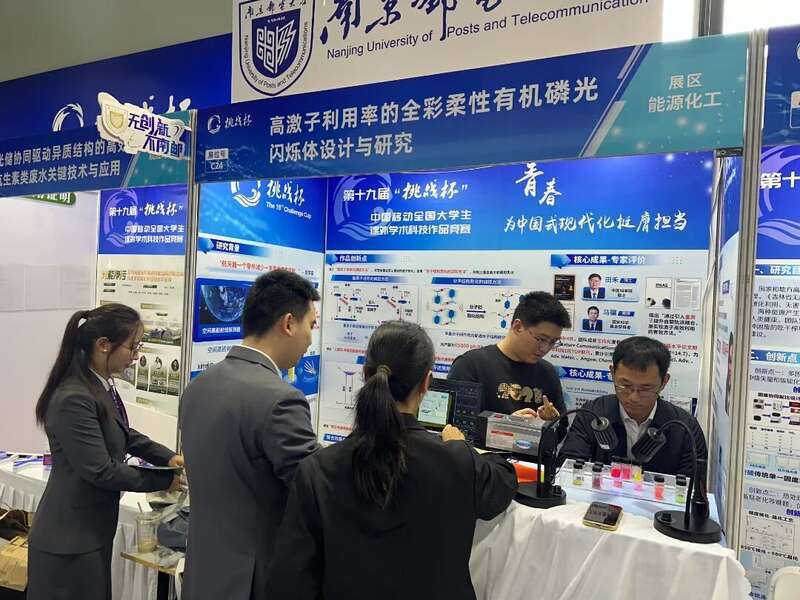 陶冶的“挑战杯”之旅始于2015年。当时他作为南邮材料科学与工程学院的一名研究生,以学生队长的身份带领团队,第一次来到“挑战杯”的赛场,并以《有机长余辉材料的合成及应用研究》项目斩获全国一等奖。