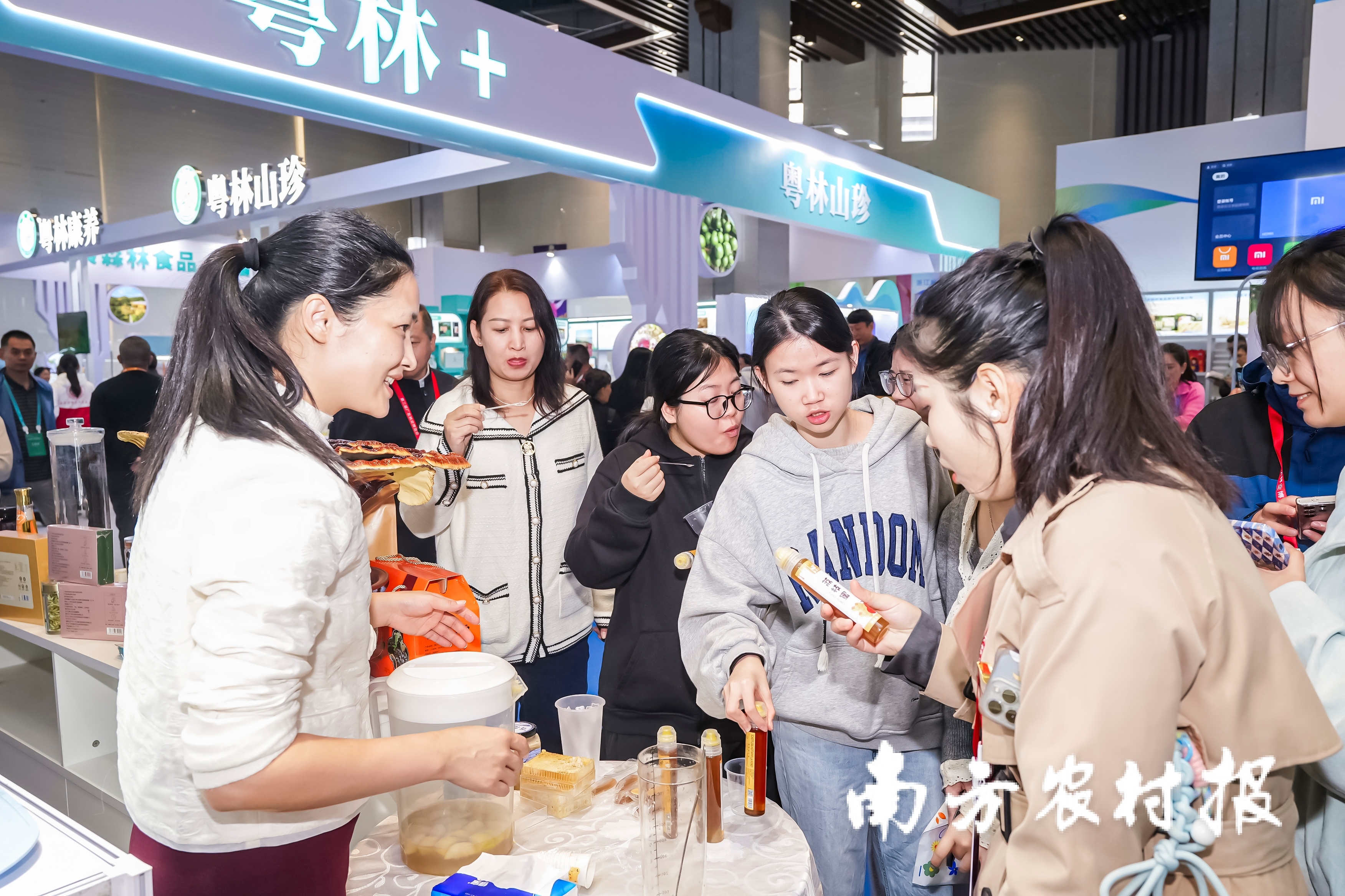 作为本届博览会展示面积最大的核心展区,“粤林+”综合展馆汇聚近40家省内优质企业,重点展示粤林茶油、粤林山珍、粤林竹品以及粤林康养等特色产品与业态,全方位呈现“粤林+”品质优势和品牌建设成果。